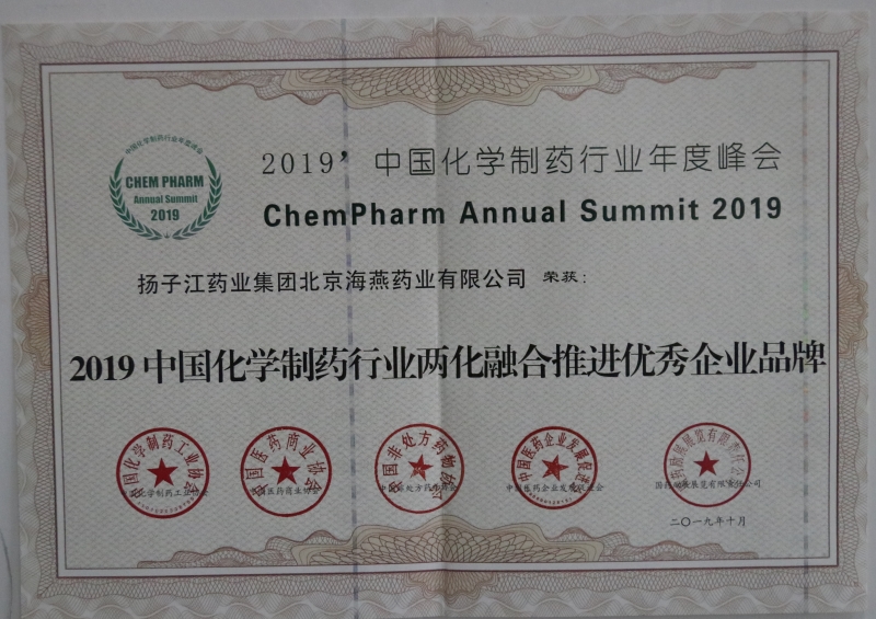 2019中國化學制藥行業兩化融合推進優秀企業品牌