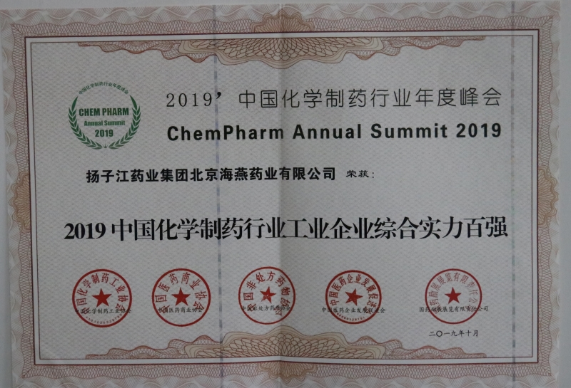 2019中國化學制藥行業工業企業綜合實力百強